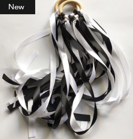 Wooden Ring with Satin Black & White Ribbon. Fabulous sensory contrast. Size of Ribbon: 1.5cm(W)*50cm(L)